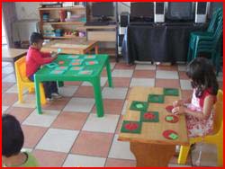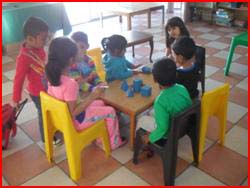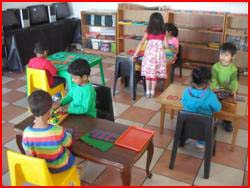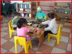 Child can work where he chooses, move around and talk at will (yet not disturb work of others); group work is voluntary Child usually assigned own chair; encouraged to participate, sitstill and listen during group lessons
